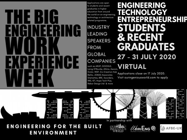The Big Engineering Work Experience Week is an Engineering, Innovation and Technology virtual work experience week open to students all over the world. With a strong Engineering & Technology for Sustainable Development theme, it has been designed to give students real life insight into Industry approach to Sustainability. It prepares students for Industry and supports their understanding of various career paths.